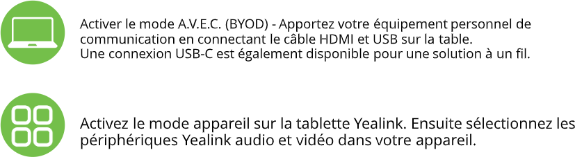 A.V.E.C. - Apporter votre équipements de communication. C'est aussi la traduction de l'accronyme anglais, Bring your own device ou BYOD.